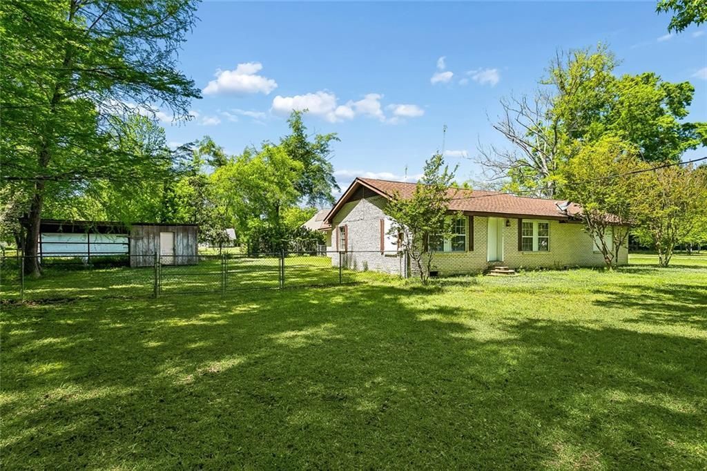 Resting on a dead-end street this spacious family home (over 2300 sq. ft, living) sits on a huge (.64 acre) tree shaded lot, in the middle of town. The large living room features a vaulted ceiling and a wood burning fireplace. A galley kitchen connects the living and dining areas. A secluded den, four bedrooms and two bathrooms gives plenty space for the entire family. The huge yard boast a shed, plenty of room to play, and even has a MAYHAW orchard. Bring your imagination and with a little TLC this could be the one.